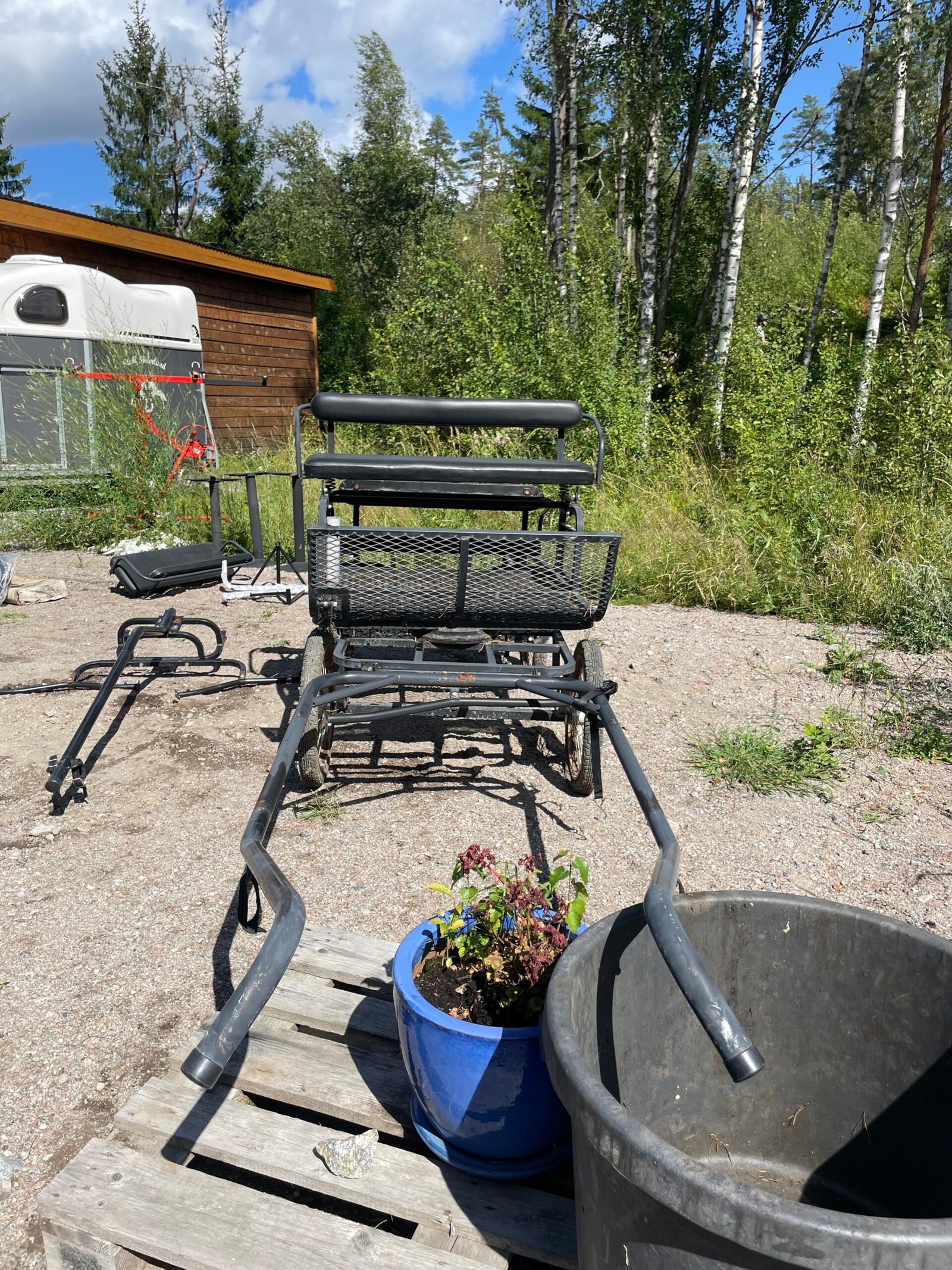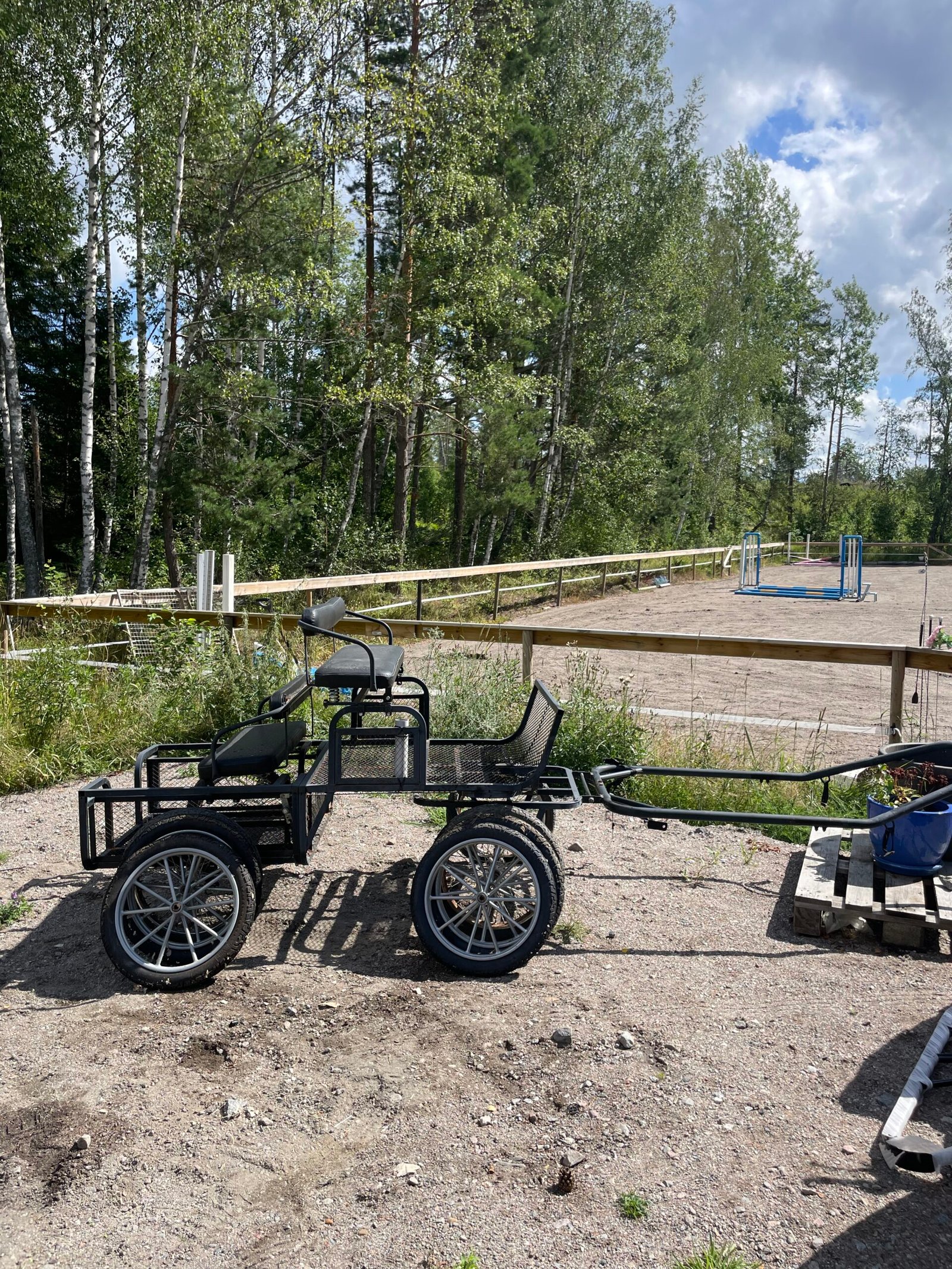 Fyrhjuling vagn som passar större shetlandsponny – C-ponny (så klar passar den till större häst också men vagnen är inte stor och väger inte mycket så passar bäst till sån ponnys)